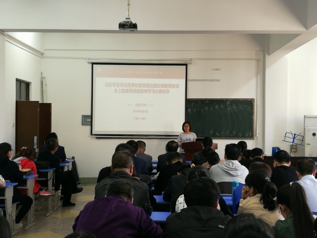 习近平总书记于3月18日主持召开学校思想政治理论课教师座谈会,柏杨老师是此次座谈会邀请的教师之一,很荣幸到人民大会堂受到了习总书记的接见,并参与座谈会讨论了思政理论课程建设。柏杨老师从教育的重要性、教育的任务以及思政课是立德树人的关键课程开始,强调了思想政治理论课对员工成长成才的帮助。提醒各位教师要牢记习近平总书记对思政课教师提出的政治要强、情怀要深、思维要新、视野要广、自律要严、人格要正的六点要求。最后柏杨老师分享自己的心得体会,作为教师一定要坚定自己的理想信念,努力实现自己的梦想,做一名合格的人民教师。