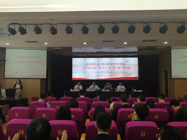 公司副经理孔蜀祥宣读2019届本科毕业生名单,为毕业生送上祝福,宣读完毕后,毕业生依次上台领取毕业证书。