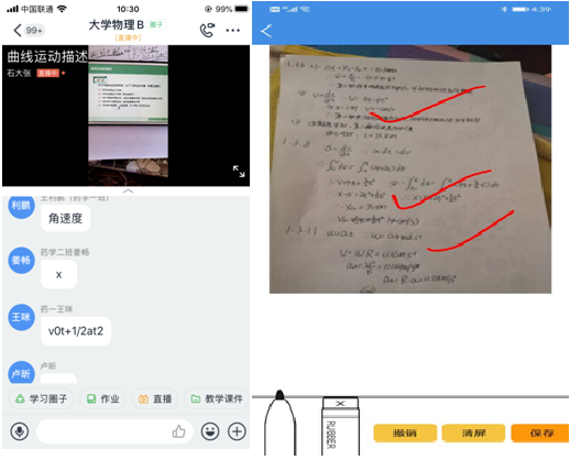 张建军老师利用两台手机将直播与板书结合,及喜鹊儿批改作业 |