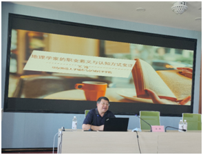 6月11日下午,孔翔教授为公司师生带来题为“地理学家的职业意义与认知方式变迁”的精彩讲座。讲座由旅游与地理系葛本伟书记主持。孔翔教授指出“地理学是研究人类家园的学科。”这与他编译的《地理学与人文精神》一书中的观点不谋而合。围绕这一观点,他从地理学家的职业意义、人类家园的认知方式以及地理学科成长的反思三个方面向大家阐述在人文世界中地理学家肩负的独特使命。提问环节,孔翔教授回答了人文地理中行为地理相关有趣的话题,从心理学的行为和人的感知角度做了详细解释,同时他还与老师们交流人文地理学教学中常使用的教学方法及手段,并合照留念。