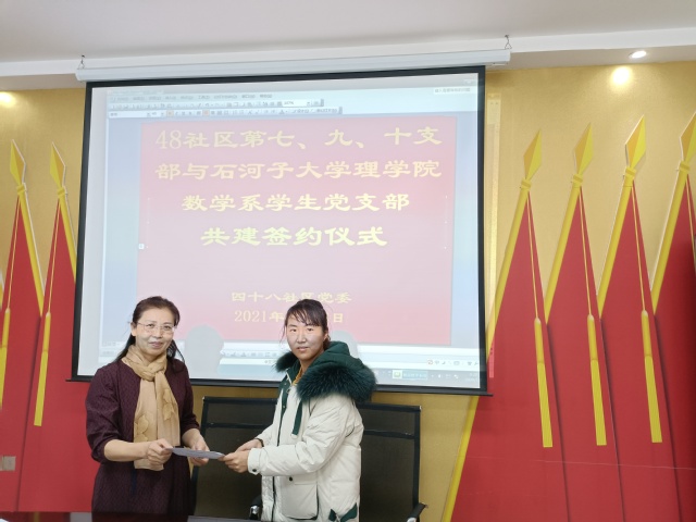 数学系党总支书记杨红伟、组织委员王学峰,数学系员工党支部书记张梦琇与石河子市东城街道48社区党委书记徐静等参加了签署仪式。 (通讯员:杨红伟 张梦琇)