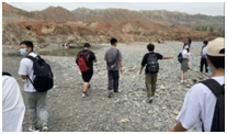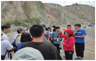 活动开始,旅游与地理系教师陈月娇、刘琳、孙少茹、欧阳吟强调实习的安全问题。要求同学们务必紧跟团队、遵守纪律。高素芳老师向大家讲述本次实习目的——沿途观察玛纳斯河河流地貌特征变化,天山北麓山前地质构造。并详细介绍了其构造成因及变化、测量岩层产状三要素方法。指导同学们观察河流地貌构成及特征,结合气象要素、生物、土壤形态特征等自然地理现象,充分认识自然地理环境的整体性。刘海军老师在实习过程中讲解了如何使用激光测距仪。