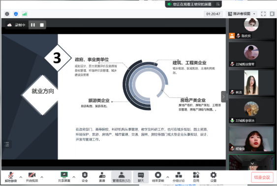 921日上午十点,人文地理与城乡规划专业概论》课程小组汇报启动“雨课堂+腾讯会议”线上互动直播2022级人文地理与城乡规划全体新生参加此次汇报,课程会议由任课教师陈欢欢老师主持。