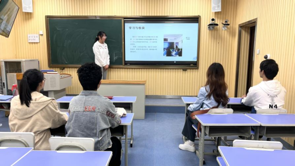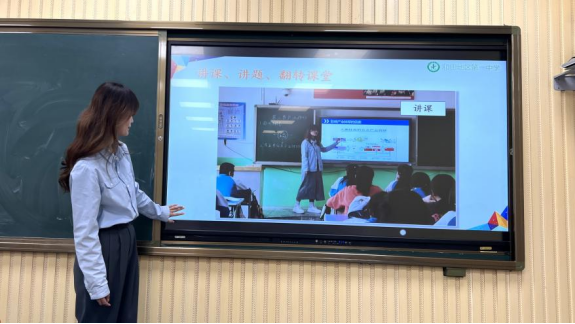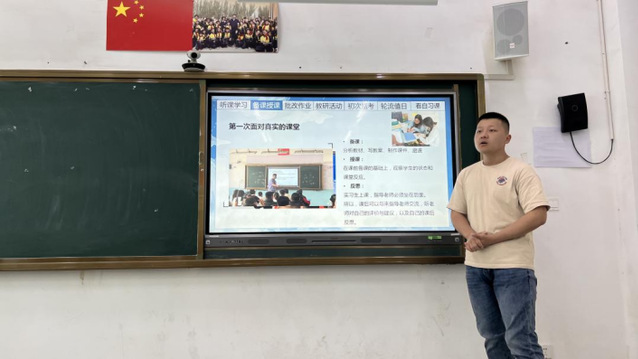 汇报大体对工作、生活方面进行了不同的分享:在工作方面,大家被分到了不同的岗位,其中包括语文、数学、英语、物理、地理、历史等各种科目,教授不同的年级。虽然不是每个同学都分到了自己的专业,但所有人都积极备课、认真听课,通过自己的努力,尽快适应讲台上的生活,备好每一堂课,总结每节课的不足,通过听课取长补短,完成了从员工到教师身份的转变。在生活方面,实习学校给了我们许多帮助,不仅解决了生活中的问题,还积极与我们沟通,努力了解我们的需求,尽力给实习支教老师好的待遇;另外,我们更学会了生活:尝试自己做饭,一起结伴游玩,打卡美食。