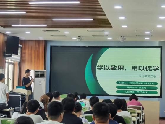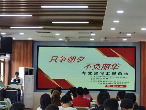 此次汇报将66名实习生依据不同的实习地点依次划分为10组。汇报之初,由前往中国地质大学的交换生进行汇报,该组前往多个实习基地进行研究并进行相关土壤检测实验,负责数据处理工作。他们通过使实践完美诠释了“实践是检验真理的唯一标准”。