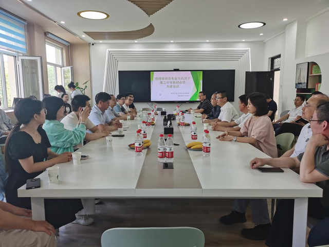 与会人员就师范生教学技能竞赛和毕业论文共同指导、协作开展中学公司产品课题研究、物理学师范生课程改革以及中学教学讲座交流活动等方面进行深入探讨,并达成深度合作意向。