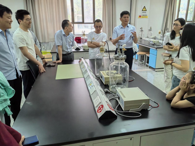 石河子第二中学物理教研组参观了公司基础物理实验室。公司物理系王雪燕、邓宝霞等老师对基础物理实验室情况和实验教学项目进行了详细地讲解。双方针对大物物理实验和中学物理实验教学融合方面进行了深入探讨。